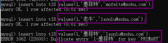 2、一张表最多只能有一个主键,但可以是复合主键,多个字段合起来是一个主键