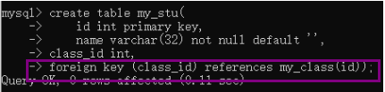 9.1.4、foreign key(外键)使用方式:foreign key (本表(从表、外键表)的字段名)references 主表名(主键名或unique字段名)