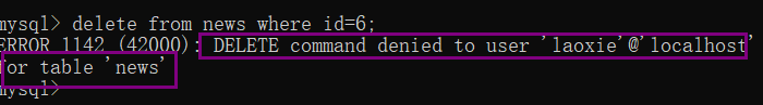 5、一旦建立外键关系,数据就不能随意删除了;如果要删除,除非把设置外键的从表中的对应ID的数据都删除,才能去删除主表中的该条ID记录值